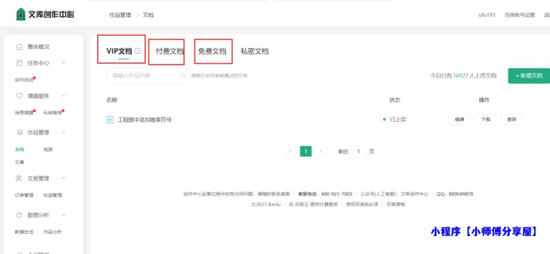 第二种、付费文档,可以设置文档价格,比如两块、五块,十块、88都可以,有人购买文档就可以得到更高分成,免费的分成少一些。