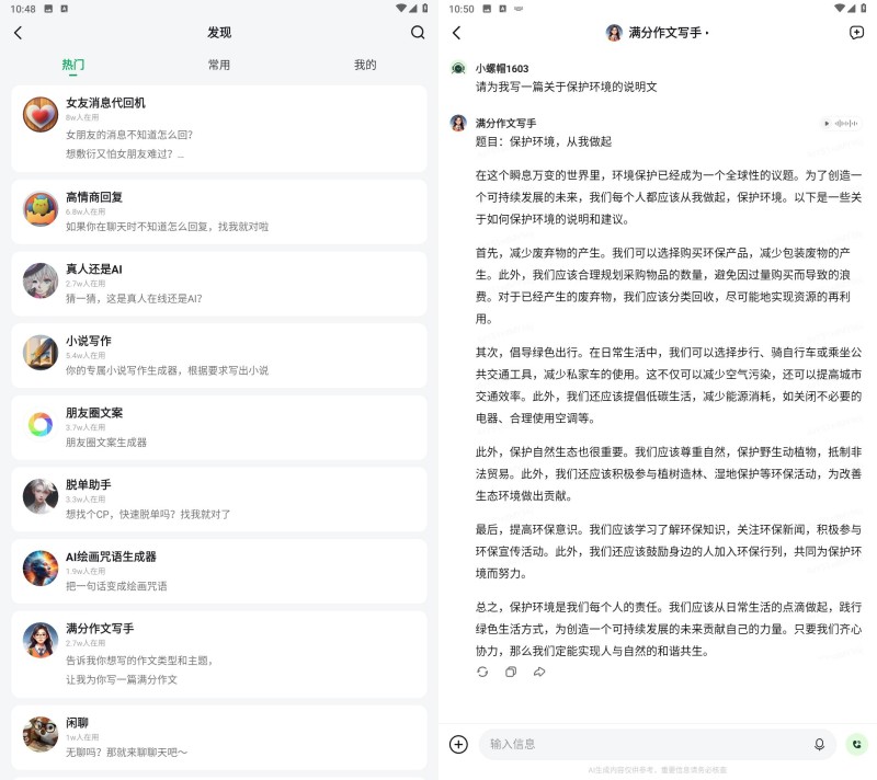 会根据你的需求自动匹配不同的智能体,为你提供多样性和个性化的回复。