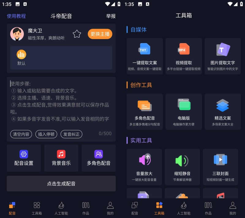 1、提供多种不同的配音模式,能够模拟不同角色的语调和表情,满足用户多样化的创作需求。