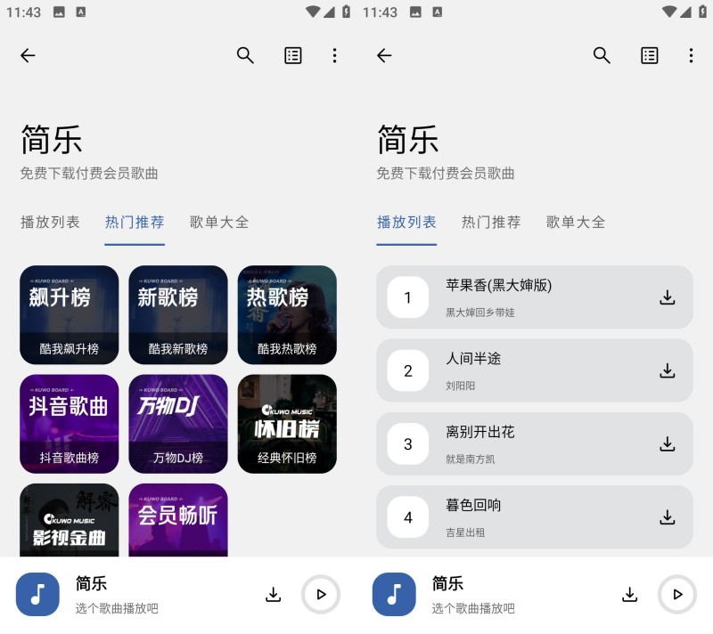 简乐是一款很不错的手机音乐播放软件。在该软件中你可以发现各种优质的好音乐,满足了不同音乐口味的你,平常喜欢听音乐的你可不要错过了这款宝藏软件。