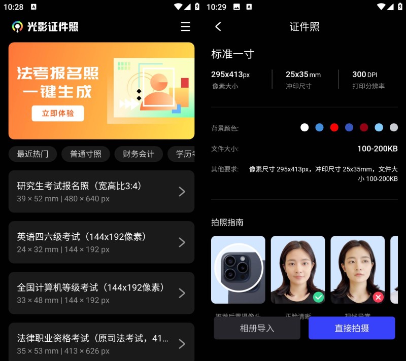 光影证件照是一款良心的证件照制作软件,无需登录,无广告干扰,专注于证件照制作。提供上百种证件照规格,适用于各种考试、职业资格认证等场合。只需三步即可快速制作出高质量的证件照,并支持自动抠图、智能换底等功能。